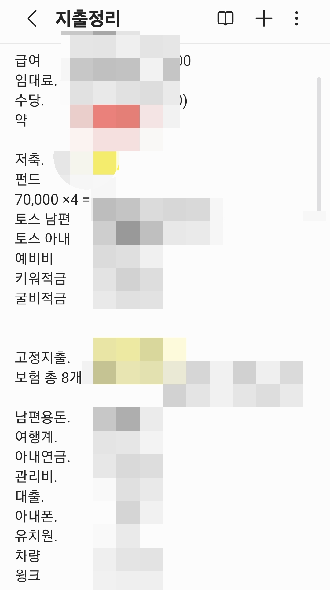 실제로 핸드폰 메모장에 수시로 작성 및 수정하고 있는 수입/지출표
