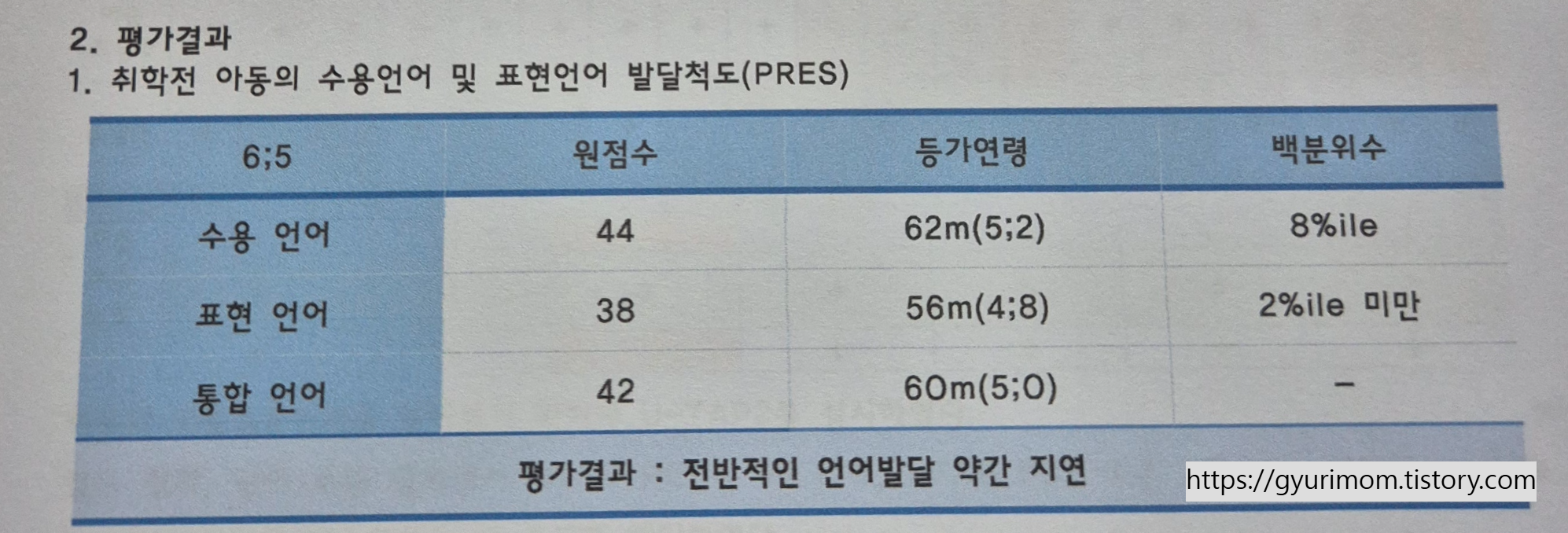 [1] PRES 언어 발달 척도 결과