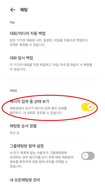 - 카카오톡 입력 중 상태 보기는 최근 업데이트로 기본 적용