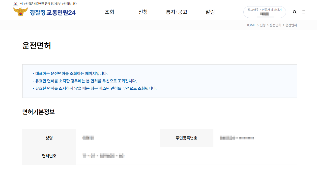 본인 인증만 하면 누구나 바로 갱신 기간 조회가 가능합니다.