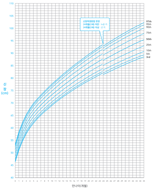 35개월까지는 여아나 남아나 신장차이는 크지 않네요. 저희 아이도 보면 오히려 여자아이들 키가 더 큰 경우도 많더라고요^^