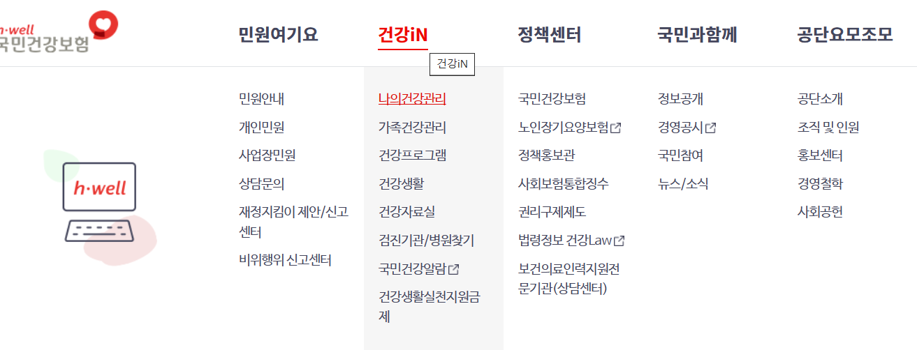 1. 국민건강보험 홈페이지 또는 어플(The건강보험) 에 접속하여 로그인을 해주세요.