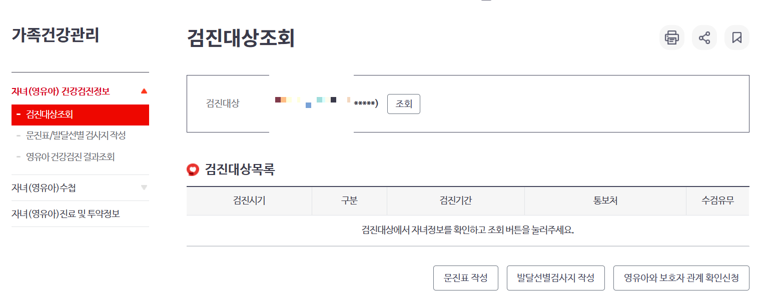 4. 아이의 검진대상목록 확인