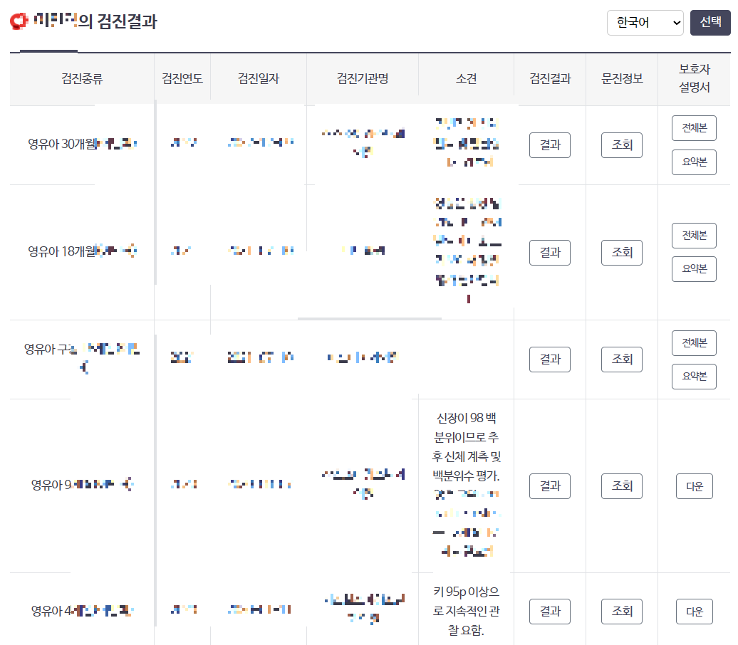 영유아 건강검진 결과 조회