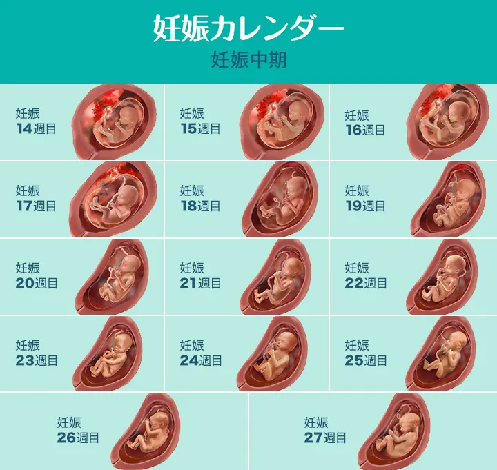 임신 중기는 임신 초기에 형성되기 시작한 기본적인 기관이 계속 발달해 갑니다. 임신 중기에는 아기의 크기는 복숭아 정도의 크기에서 콜리 플라워 정도의 크기가됩니다. 아기의 급성장에 의해 엄마의 배는 커지고, 태동을 느끼기 시작하기 때문에 아기의 움직임을 알게 됩니다.