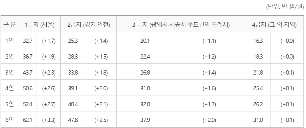 2022년 기준 중위소득표