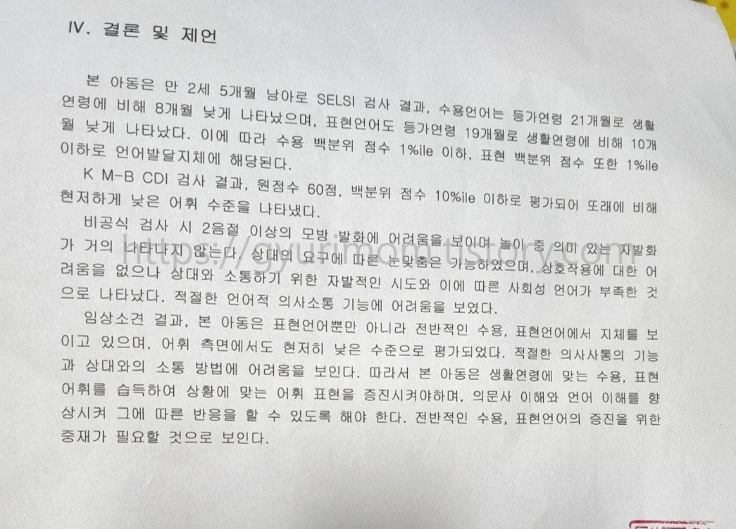 아이가 29개월을 앞뒀을 때 동네 발달 센터에서 언어 검사(SELSI검사) 를 했습니다.