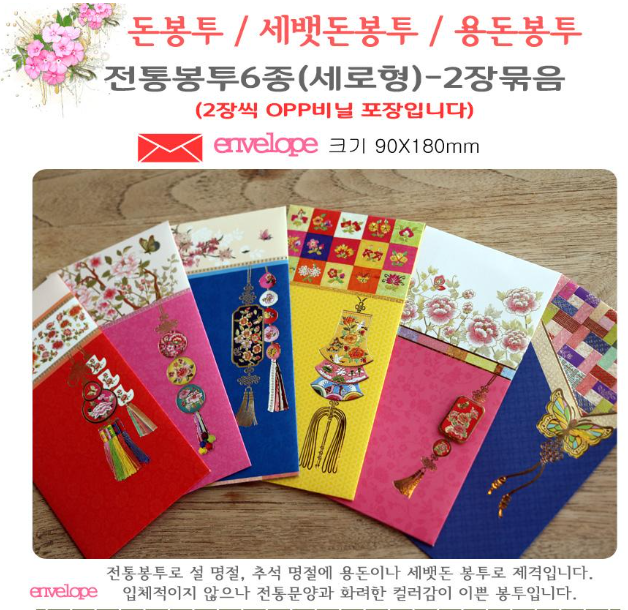 다양한 봉투를 한 번에 사고 싶다면 이 링크를 주목해 주시기 바랍니다. 종류별로 1개씩 살 수도 있어서 다양하게 사두고 쓰기 좋은, 다양하게 골라 살 수 있는 용돈봉투 세뱃돈봉투 41종 추천 드립니다.