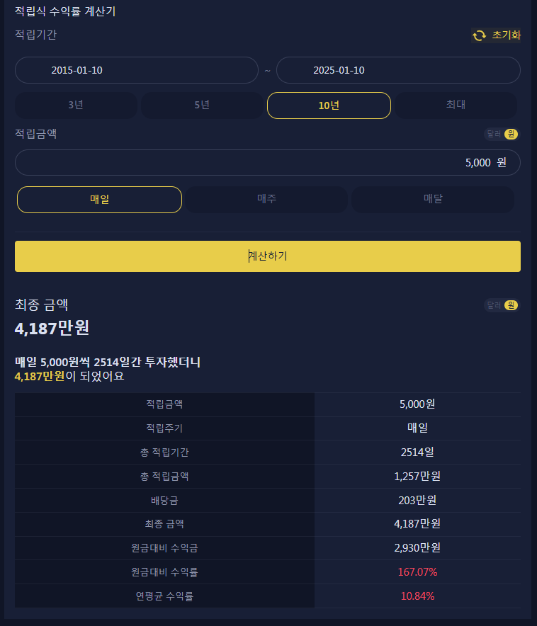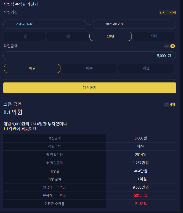 매일 5,000원씩 10년간 투자한 결과