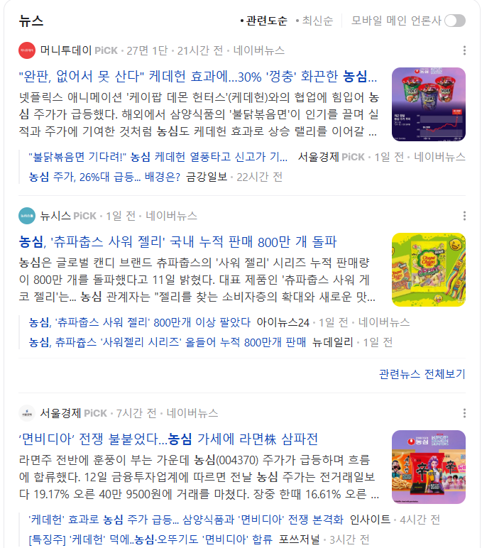 농심은 최근 '신라면 툼바'라는 신제품을 출시하며 젊은 층을 중심으로 브랜드 리뉴얼을 시도하고 있습니다. 또한 케이팝 콘텐츠 '케이팝 데몬 헌터스'와의 콜라보 마케팅을 통해 MZ세대와의 접점을 확대하고 있습니다. 이러한 마케팅은 해외 소비자에게도 긍정적인 반응을 이끌어내고 있어 글로벌 브랜드 가치 향상에 기여하고 있습니다.
