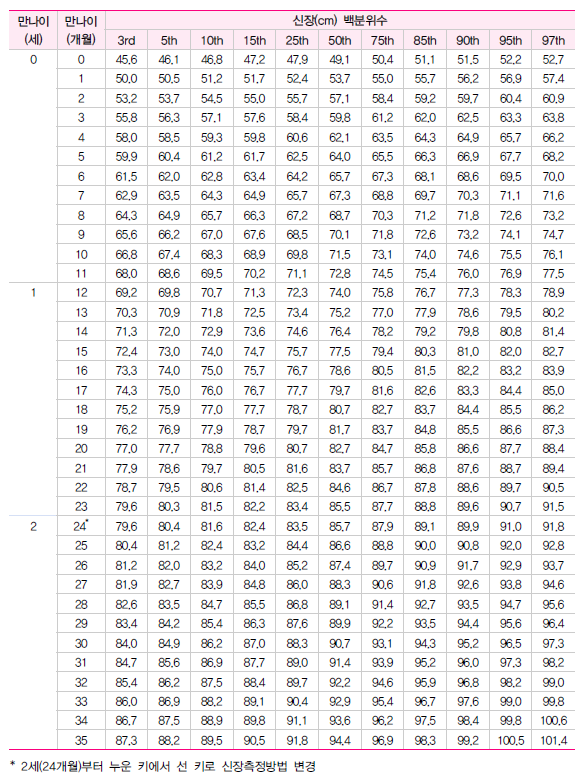 35개월까지는 여아나 남아나 신장차이는 크지 않네요. 저희 아이도 보면 오히려 여자아이들 키가 더 큰 경우도 많더라고요^^