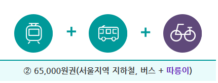 무제한 대중교통 통합 정기권으로, 6만 원 대로 서울 지하철, 심야버스(올빼미 버스) 등 서울시 시내버스 및 마을버스, 공공자전거 따릉이를 '30일간' 무제한으로 탈 수 있는 카드입니다.