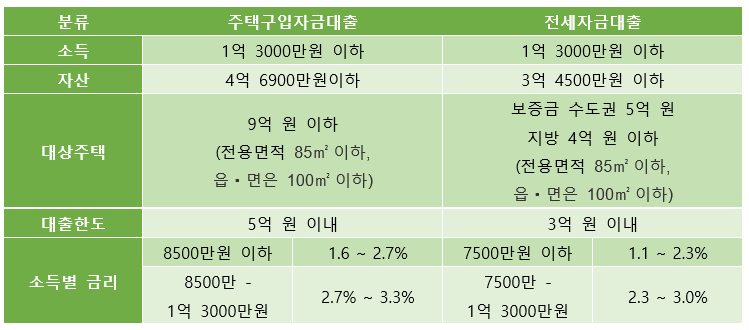3) 부부합산 연 소득 1.3억 원 이하 및 순 자산 금액 3.45억 원 이하