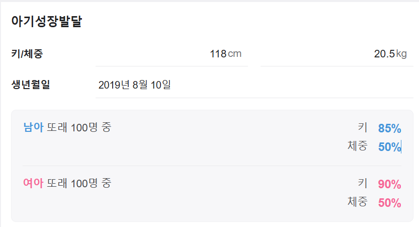 4~5개월 전보다 키 4cm, 몸무게 1kg 증가!